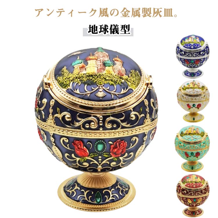 ■はいざら 屋外 フタ付き 灰皿 おしゃれ 卓上 地球儀型 金属製 屋外 卓上灰皿 ローズ柄 灰皿 灰皿 大容量 レトロ アンティーク調 高級 ア
