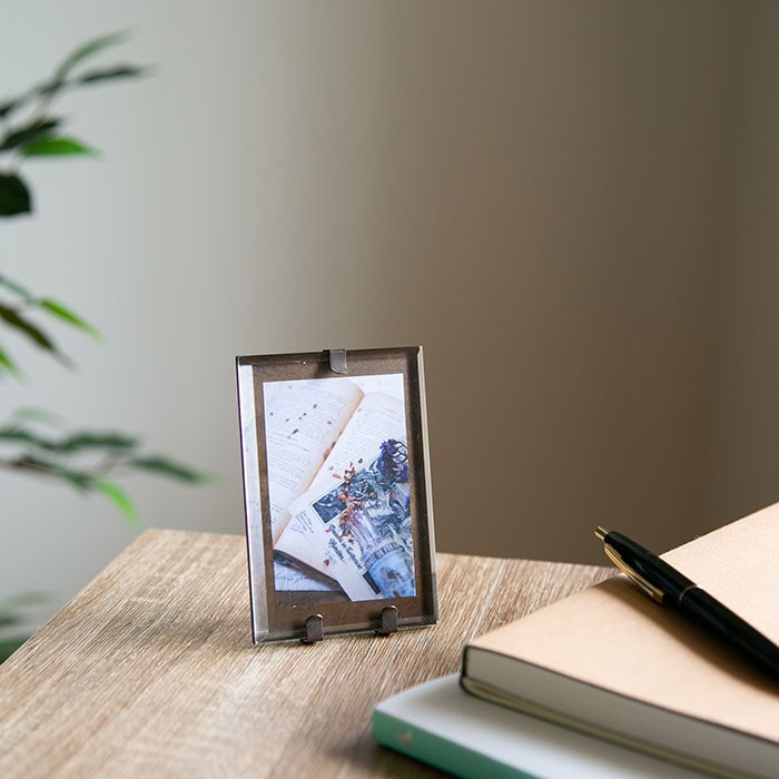 フォトフレーム一体型のアロマディフューザーです。フレームの下部にアロマ石膏ベースを入れ、香りを楽しめます。フレーム上部はスライド式でお好きな写真やアート作品を入れられます。机に置いたり壁に掛けたり用途に合わせて飾り方を変えられます。パッケージに施されたエンボス加工も美しく、メッセージを書き込めるスペースもありますので、プレゼントやお礼ギフトとしてもおすすめです。 生産国:中国 素材・材質:ABS、PC、石膏、香料、溶剤 商品サイズ:12.3×16.5×1.5cm 重量:約172g