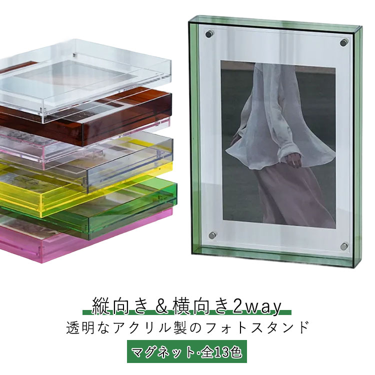 ピタッとくっつく!マグネット式フォトフレーム飾る場所を選ばないシンプルなデザインに、選べる6カラー展開♪チェキやトレカがぴったり入る大きさ!フレームの四隅にマグネットが入っており、連結することでフォトスタンドとしてディスプレイしたり、ホワイトボードや冷蔵庫など、磁石が張り付く場所に飾ることも◎※こちらは1点での販売となります。連結させる場合は、本製品が2点以上必要となります。※生産・入荷時期により若干、色味や仕様が変更となる場合がございます。※海外生産となるため若干の汚れやキズ、糸処理の甘さ等はご容赦ください。■サイズ(cm)/縦/横/重さ(g)外寸/8.8/6.4/12//内寸/8.6/5.4/-//■生産:中国製■注意事項:商品の開封時に素材の臭いを感じる場合がございます。湿気が少なく風通しの良い場所で、一週間程度陰干しして頂くと自然に軽減されます。■素材:ABS■カラー:クリアブルーイエローグレーピンクブラック