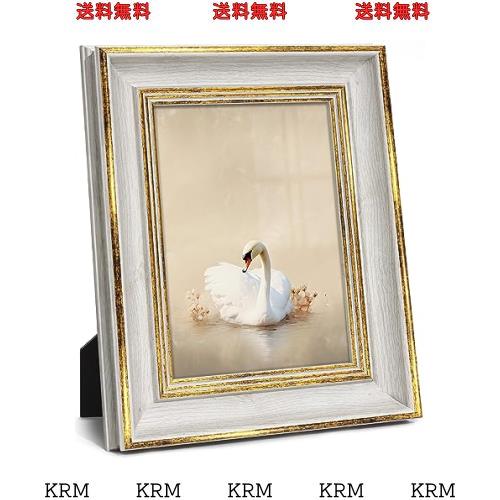 ■Afuly フォトフレーム おしゃれ 2L判(12.7x17.8cm)写真立て 壁掛け アンティーク 縦横兼用 額縁 ホワイトゴールド お祝い 記念日 誕生