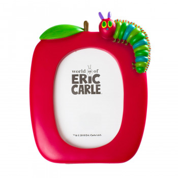 絵本「はらぺこあおむし」から飛び出してフォトフレームになりました。絵本に出てくるリンゴとあおむしが立体的に飾られています。家族の思い出や子供の成長を楽しめるフォトフレームです。