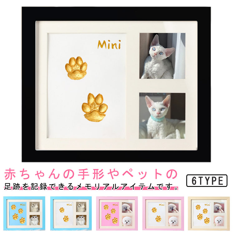 ■犬用 犬用 木製 足形 猫用 記念品 ベビー 手形 置き掛け兼用 粘土付き 写真入れ 誕生日 フォトフレーム 赤ちゃん 成長記録 記念日 遺影