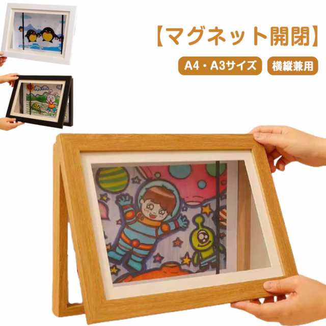 子供の絵を飾る 壁掛け A3 A4 額縁 ポスターフレーム アートフレーム 画用紙 子供の絵を飾る 子供の絵 ポスター 絵画 フォトフレーム マグネット開閉 木製 作品 保管 収納 ディスプレイ 玄関 インテリア 横縦兼用 おしゃれ 子供 孫 学校 絵画教室 幼稚園