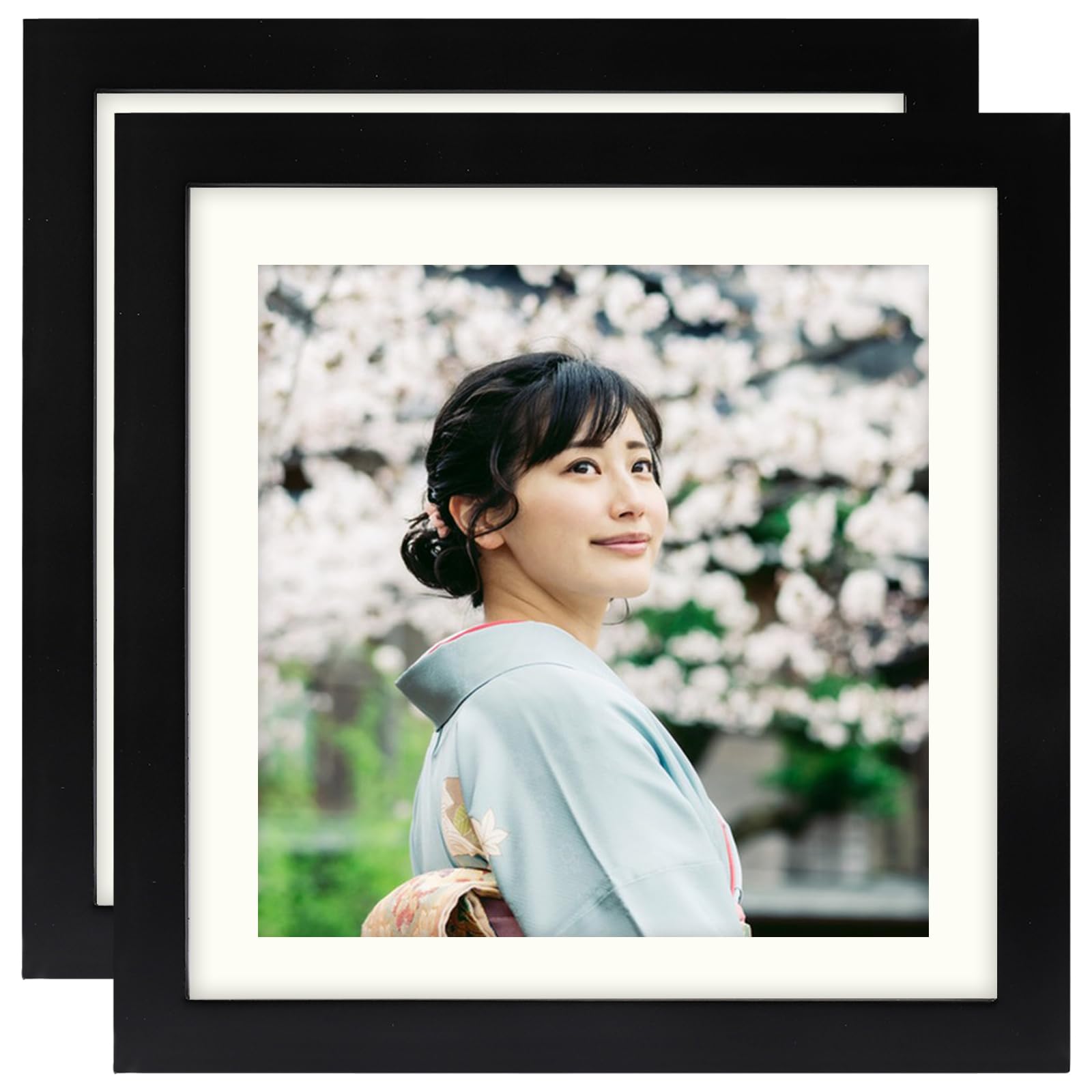 ■フォトフレーム 正方形 25角 木製額縁 2枚セット ウッドフォトフレーム 写真立て 壁掛け 卓上 両用 マット紙付き プレゼント ブラック