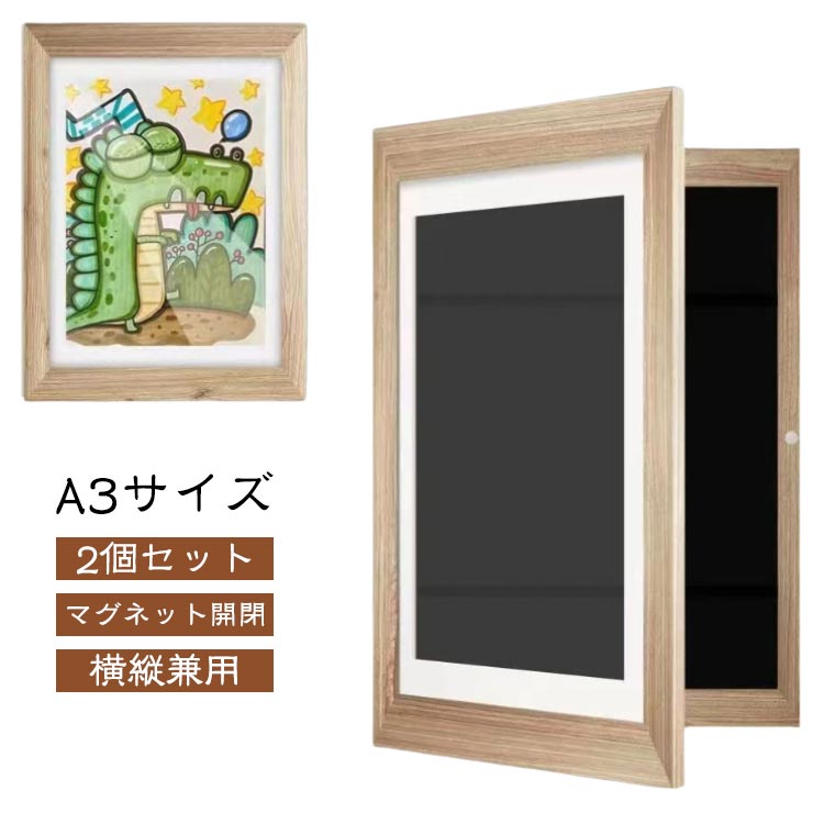 ■収納 作品 絵 画用紙 フォトフレーム 子供の絵 学校 マグネット 額縁 絵画 木製 玄関 ディスプレイ 壁掛け A3 アート 【2個セット】アー