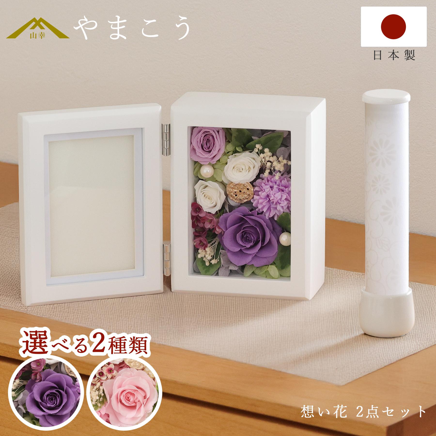 ■盆提灯 2点 「想い花」 プリザーブドフラワー 見開き フォトフレーム フォトスタンド モダン仏具 贈り物 お盆 お供え 省スペース ミニ モ