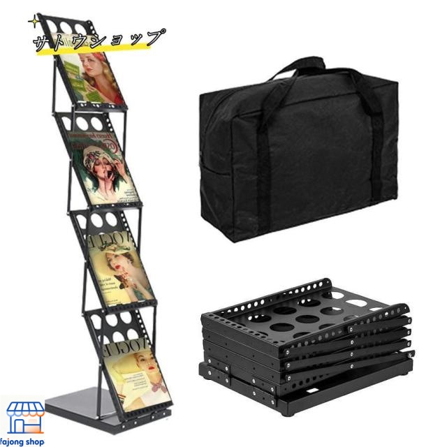 ■カタログスタンド マガジンラック 折りたたみ式4段アイアンシェルフオックスフォード布製バッグ付き A4情報ラック 片面パンフレットラッ