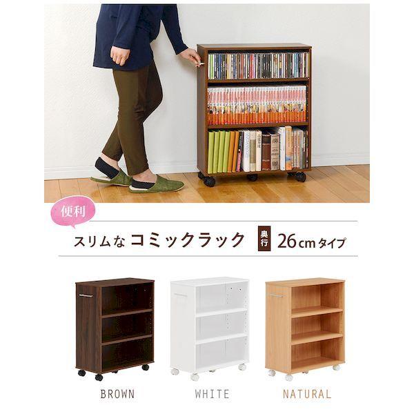 【商品説明】●狭い隙間に大容量の文庫本をストックできます。横幅26cm●商品サイズ(外寸)(約)幅55×奥行26×高さ68cm●内寸及び補足説明:●組立式●キャスター付●成分材質:主材:MDFプリント化粧板