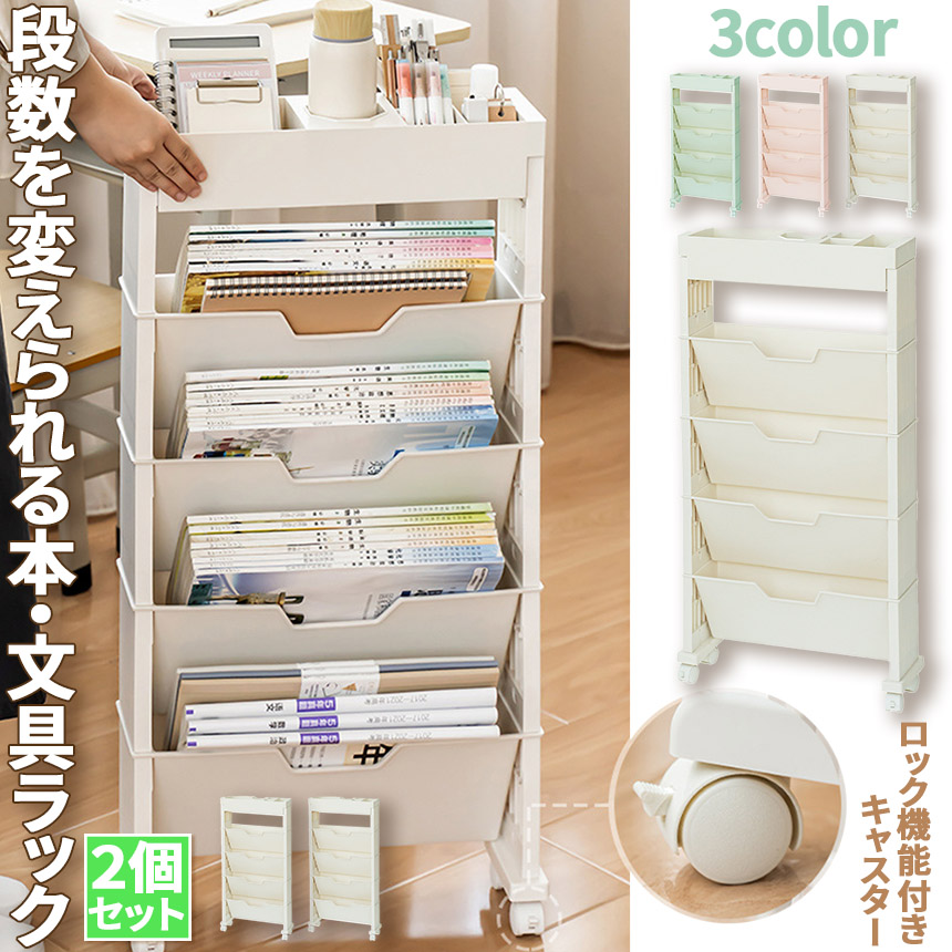 新色登場!全5色 マガジンラック デスクラック スリム 教科書収納 書類収納ワゴン ファイルワゴン キャスター付き 360度回転 引き出し付き 本棚 棚 ラック 両面 収納 小物 文房具 サイド ワゴン 書類 ファイル 雑誌 新聞 漫画 リビング 勉強 塾 学校 スクール
