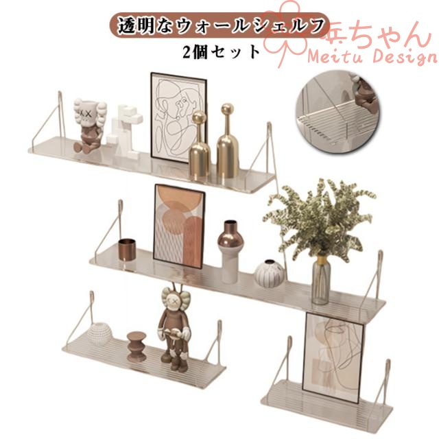 ■2個セット ウォールシェルフ マガジンラック 壁掛け 棚 賃貸 取り付け 穴開けない 石膏ボード アクリル 透明 壁面収納 アイアン ウォール