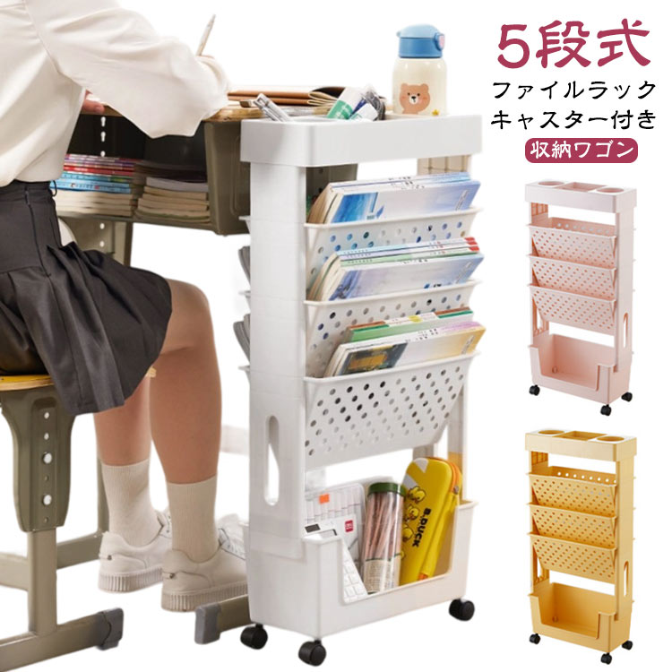 ■ファイルラック 収納ワゴン キャスター付き 5段 組立式 省スペース マガジンラック ファイルワゴン 新聞ラック 絵本棚 絵本ラック 本棚