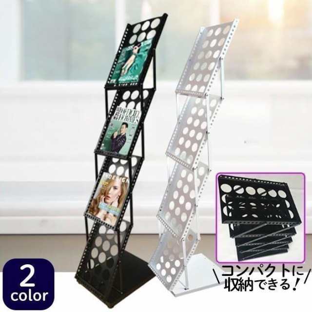 マガジンラック スリム 薄型 折りたたみ式 パンフレット おしゃれ スリム マガジンスタンド ディスプレイ ラック 棚 4段 展示会 イベント A4