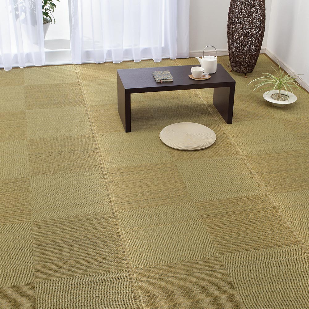 ■い草ラグ 花ござ カーペット 格子柄 ナチュラル シンプル 和室 洋室 裏不織布滑り止め 滑りにくい 抗菌防臭 消臭 団地間6畳(約255×340cm