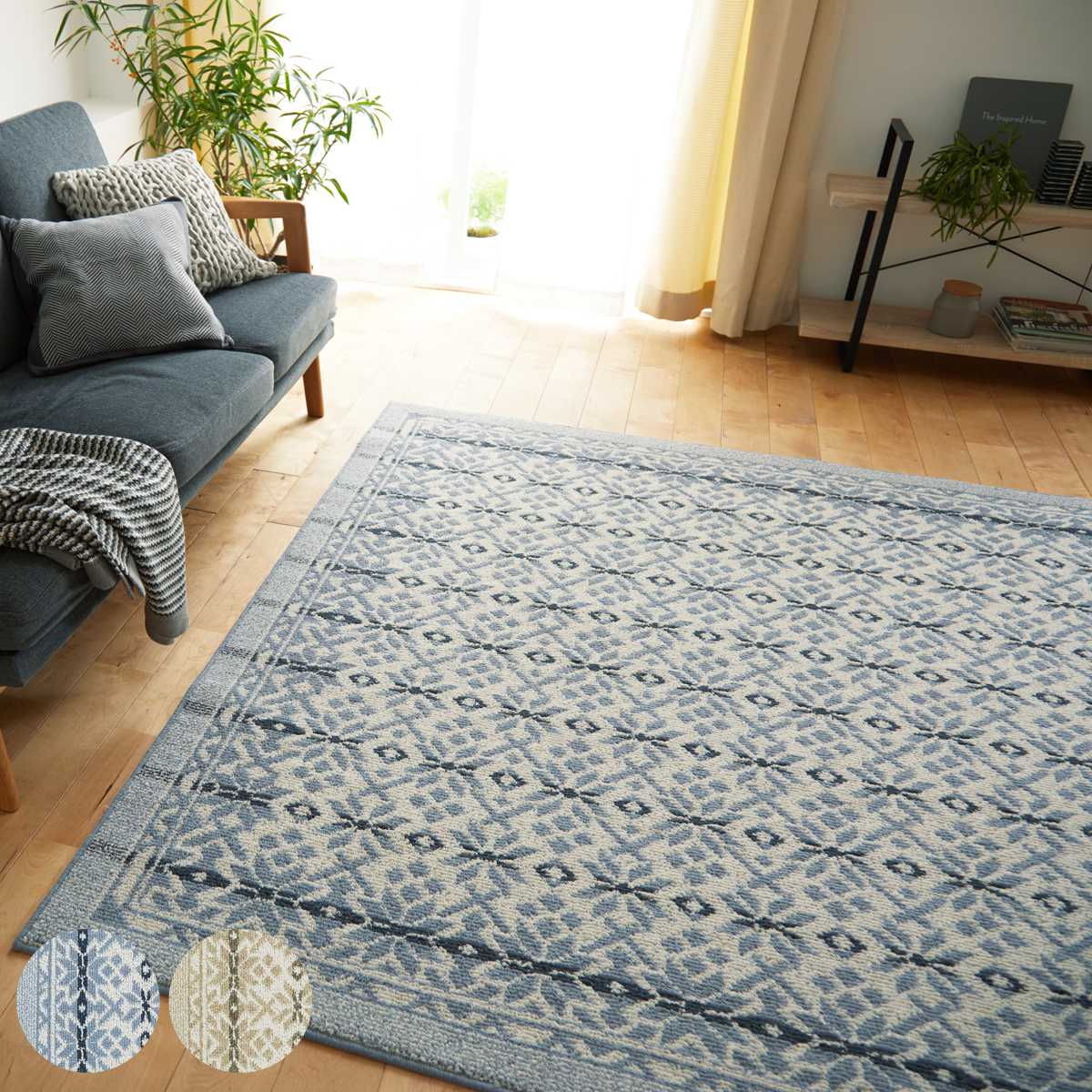 ■600016220 抗菌 平織 カーペット ミーテ 江戸間 2帖 ブルー 萩原 メーカー直送
