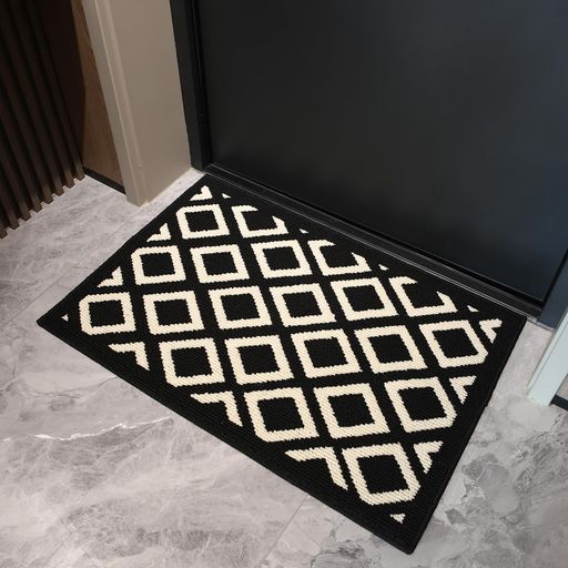 ■SEA TEAM 玄関マット ラグ 滑り止め カーペット 泥落 屋内 屋外 家庭用 業務用 オフィス用 幾何学柄 北欧 長方形 洗える 吸水 (ブラック