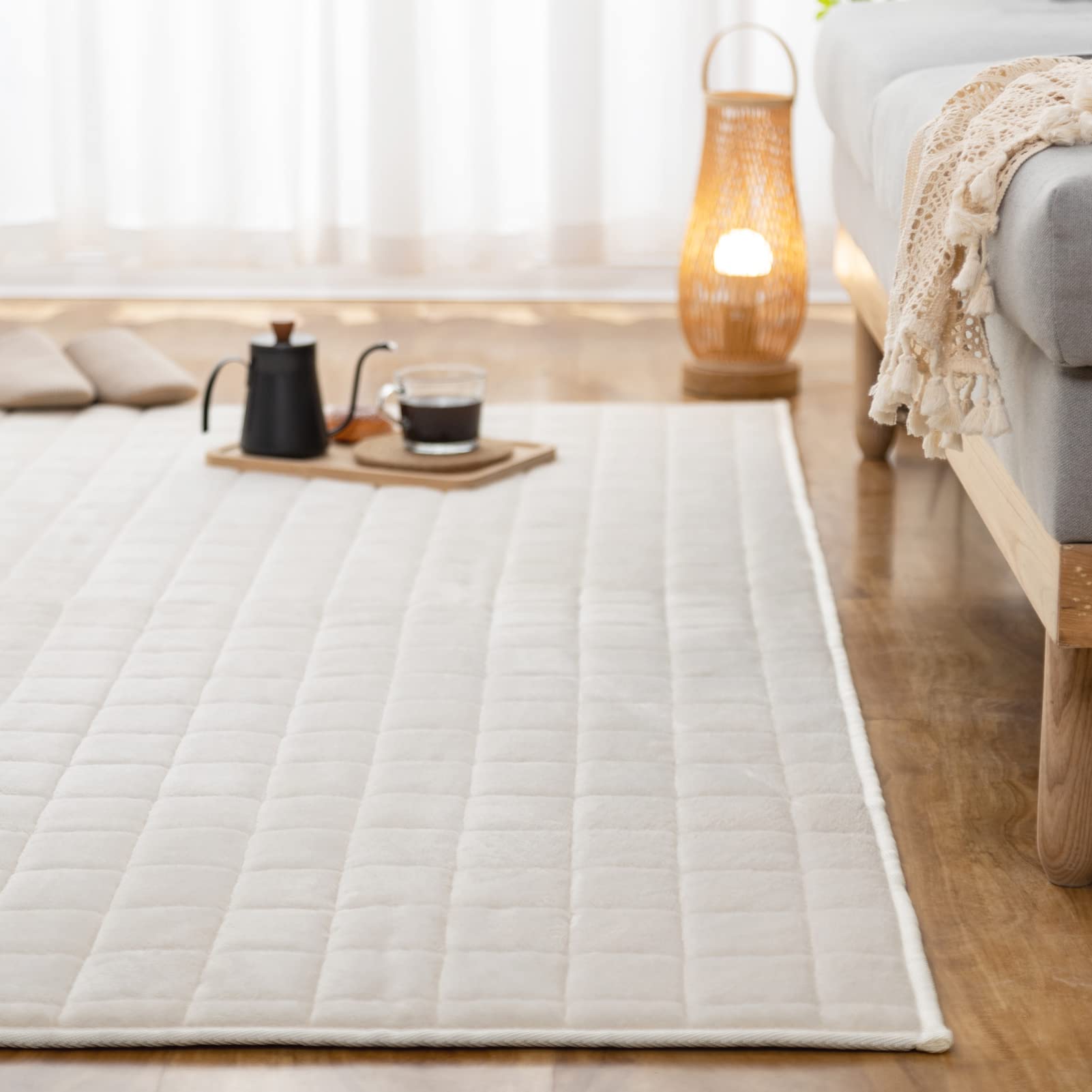 ■VK Living カーペット キルトラグ ラグマット 絨毯 ラグ 190×190cm(約2畳) 洗える 滑り止め付 防ダニ 抗菌 防臭 1年中使えるタイプ 床暖