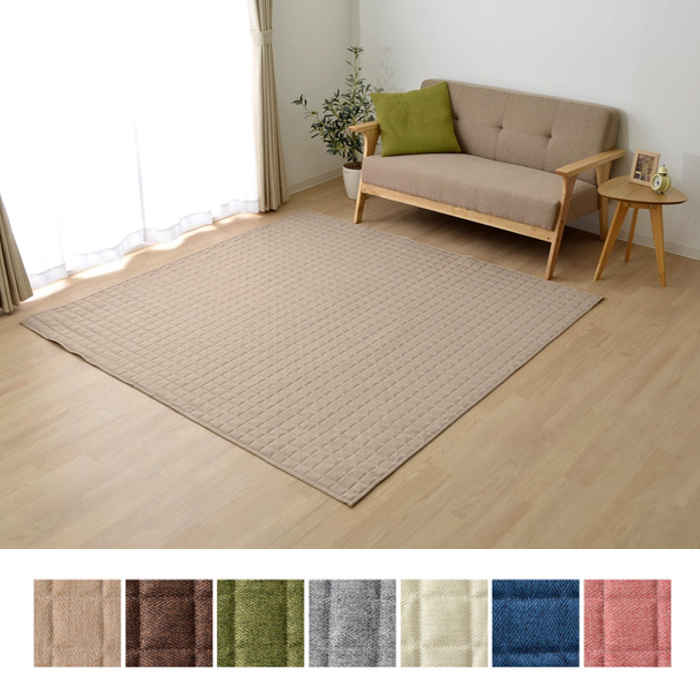 ■代引不可 ラグ カーペット 1.5畳 約130×185cm キルティング加工 ホットカーペット・床暖房対応 洗濯機で丸洗いOK 軽量 無地 コルム イン