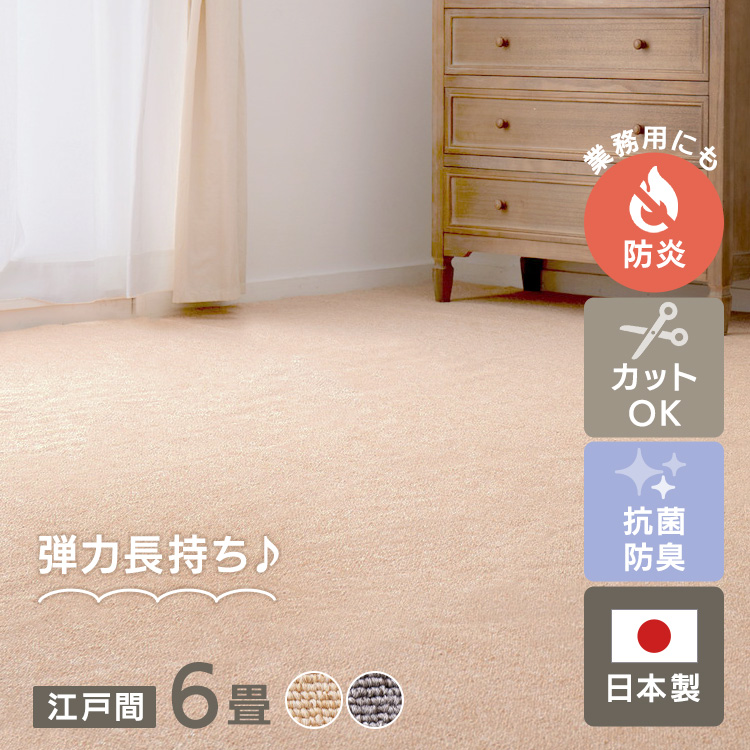 ■防炎加工の平織カーペット モーエン 江戸間6畳 600092660 [代引不可] カーペット ラグマット 絨毯 防炎 江戸間 日本製 ホットカーペッ