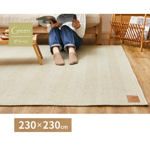 ■ラグ カーペット グリーン 約230×230cm 洗えるヘリンボンラグ ボーナ 【北海道・沖縄・離島 送料別】