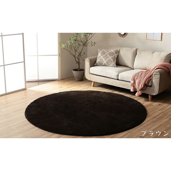 ■ラグ マット 絨毯 約185cm 丸 ブラウン 洗える 円形 滑りにくい 無地 床暖房 ホットカーペット対応 オールシーズン 【北海道・沖縄・離島