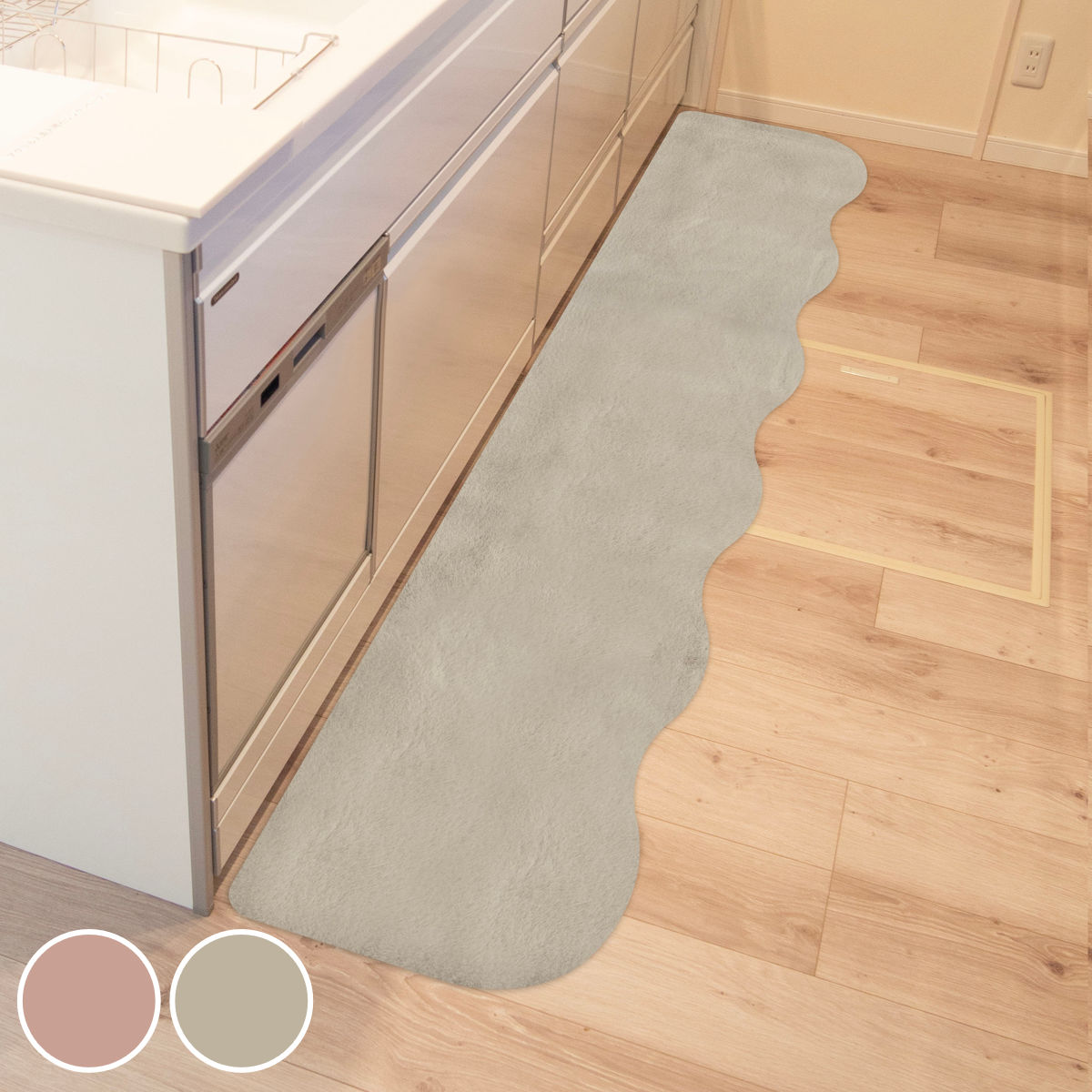 ■キッチンマット pupumof ラビットファー調インテリアマット 45×252cm ( キッチン マット キッチン用マット 45cm 252cm 滑り止め 洗える