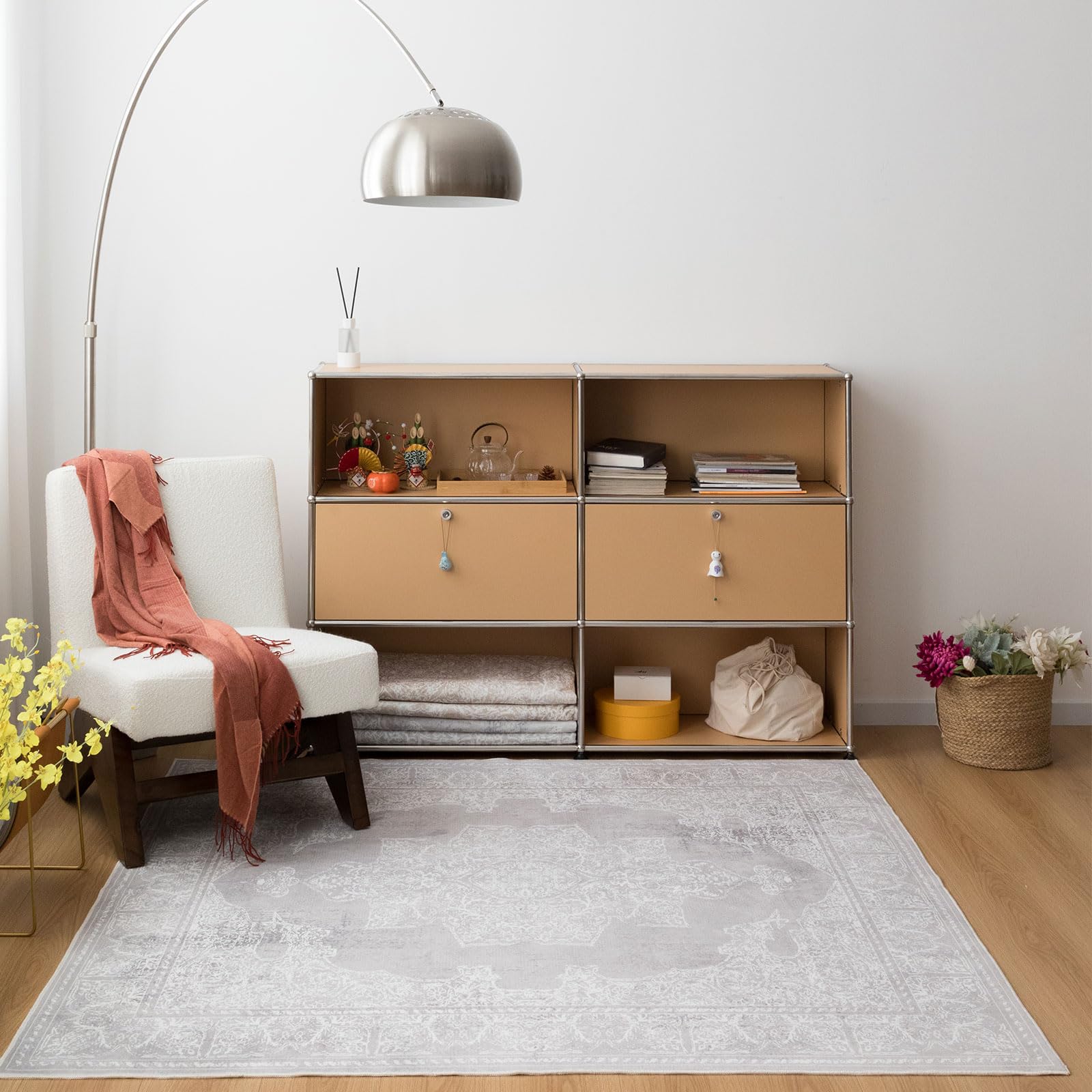 ◆商品名:u-living カーペット 2畳 ペルシャ 絨毯風 ラグ マット 185X185CM 洗える 花柄 オールシーズン 軽量 滑り止め 防ダニ 防臭 グレー 床暖房