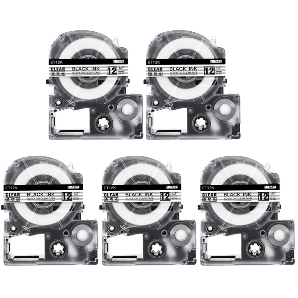 ■5個 Greateam ST12K 12mm 透明黒文字ラベルテープ 互換キングジム テプラPROテープカートリッジ マット 12mm 透明ラベル/黒文字 長さ8m