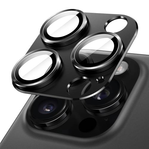 JETech i Phone 16 Pro 6.3インチ / i Phone 16 Pro Max 6.9インチ用 カメラレンズフィルム 全面保護 9H強化ガラス製 リングカバー マットメタルプレート ケースに干渉なし 1枚入り (ブラック)