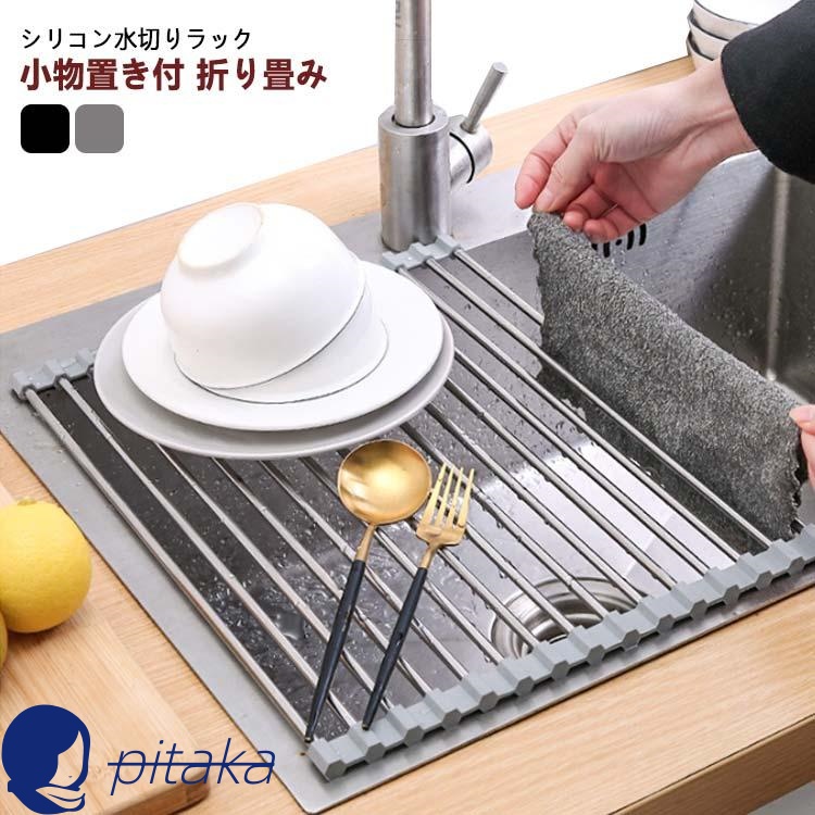 水切りラック シンク上 折りたたみ 小物置き付 29x37cm ライトグレー 送料無料 あす楽 たためる 水切り おりたたみ ラック マット スリム