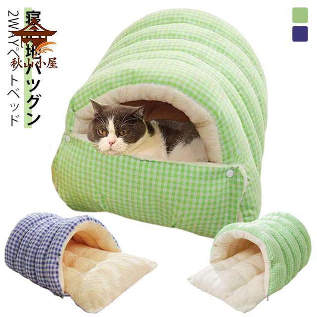 ■ドーム型 ペットベッド 猫 犬 チェック柄 秋 冬 おふとん 防寒 保温 ペット用 ベッド マット クッション 2way 犬猫兼用 かわいい 秋冬 可