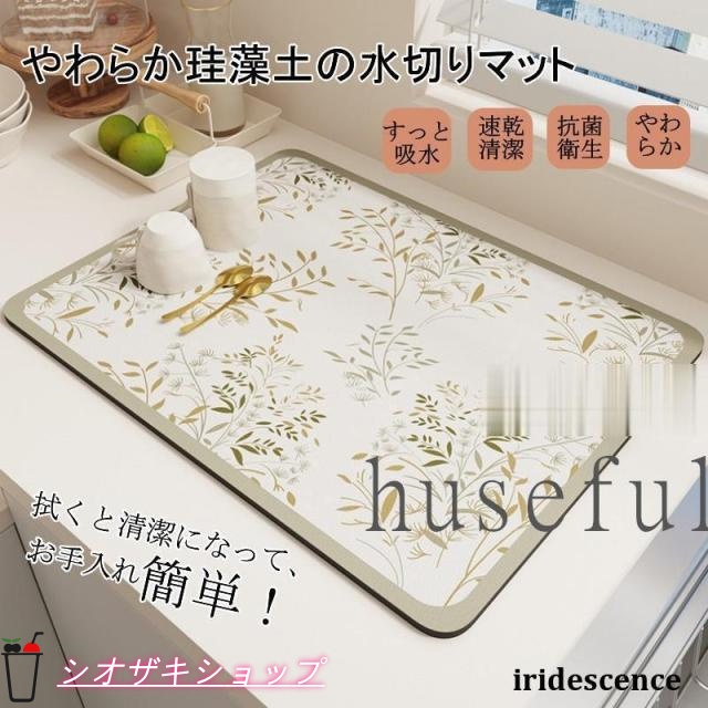 水切りマット 珪藻土 キッチン用 マット おしゃれ 拭ける アスベスト不使用 大判 瞬間吸水 速乾 脱臭効果 抗菌 ソフト 鍋敷き 滑り止め シリコン 食器置き 北欧