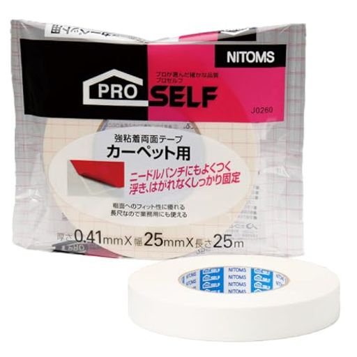 ■ニトムズ(NITOMS) PROSELF(プロセルフ) カーペット用 両面テープ 強粘着 リビング カーペット マット ラグ ニードルパンチ 固定 粗面 幅2