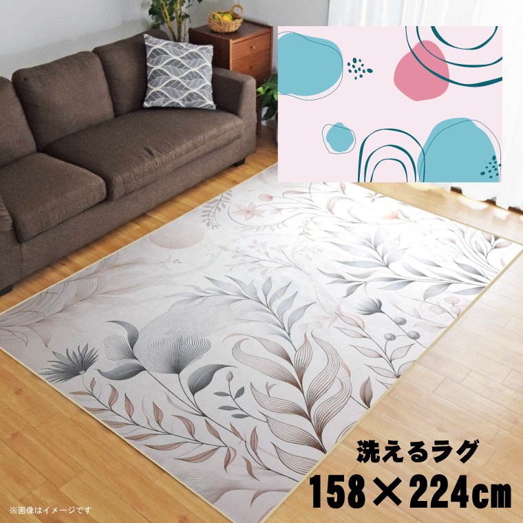■ラグ 洗える 北欧 おしゃれ 3畳 約158×224cm カーペット イラスト アクセントラグ アクセントマット オールシーズン リビング ダイニン