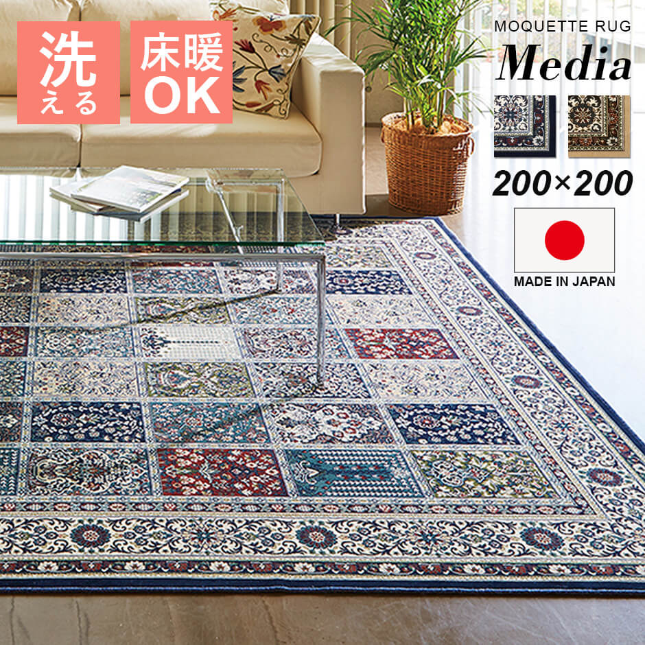 ■カーペット ラグ リビング 日本産 国産 水洗いOK ホットカーペット対応 床暖対応 抗菌防臭 薄手軽量 モケット織 高耐久 オールシーズン