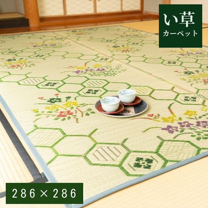 ■源流 い草 ござ 花ござ 上敷き 和室 敷物 カーペット リビング 花柄 亀甲柄 お手入れ簡単 夏 抗菌防臭 調湿 消臭 空気清浄 汚れにくい