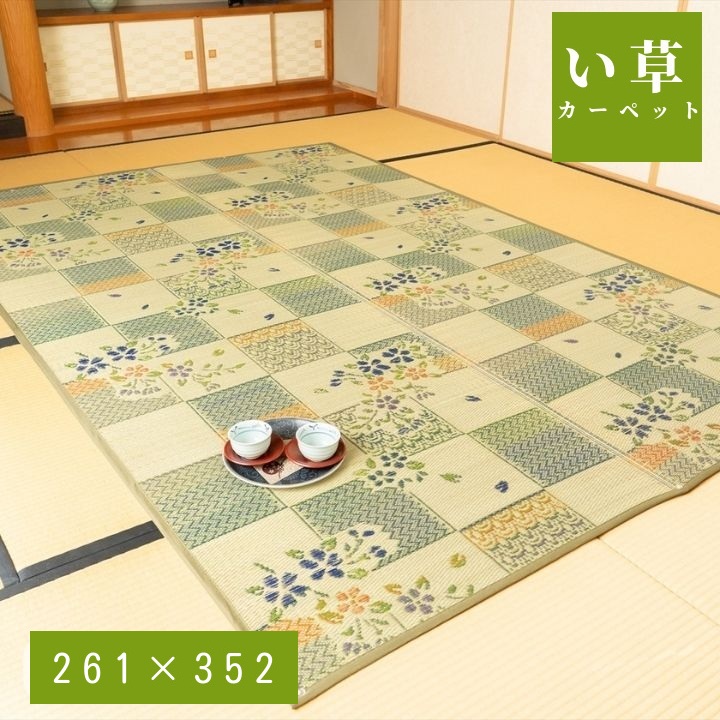 ■DXピーア い草 ござ 花ござ 上敷き 和室 敷物 カーペット リビング フローリング 格子柄 市松柄 お手入れ簡単 夏