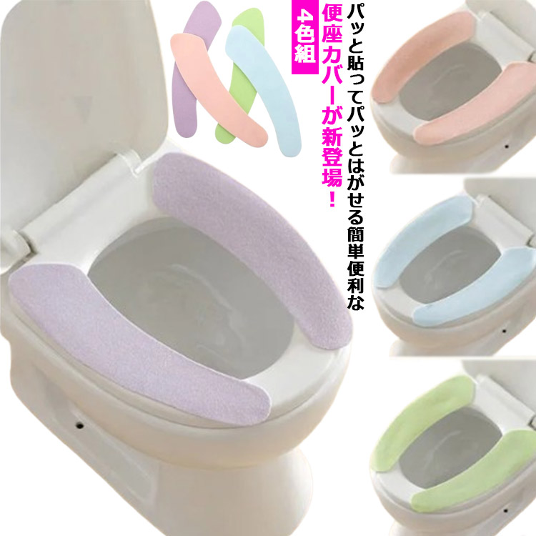 ■トイレ 4色組 便座カバー 無地 便座シート 吸着 便座マット ふわふわ ずれない トイレカバー 洗浄暖房用 シンプル 貼る 4色組 U型 洗える