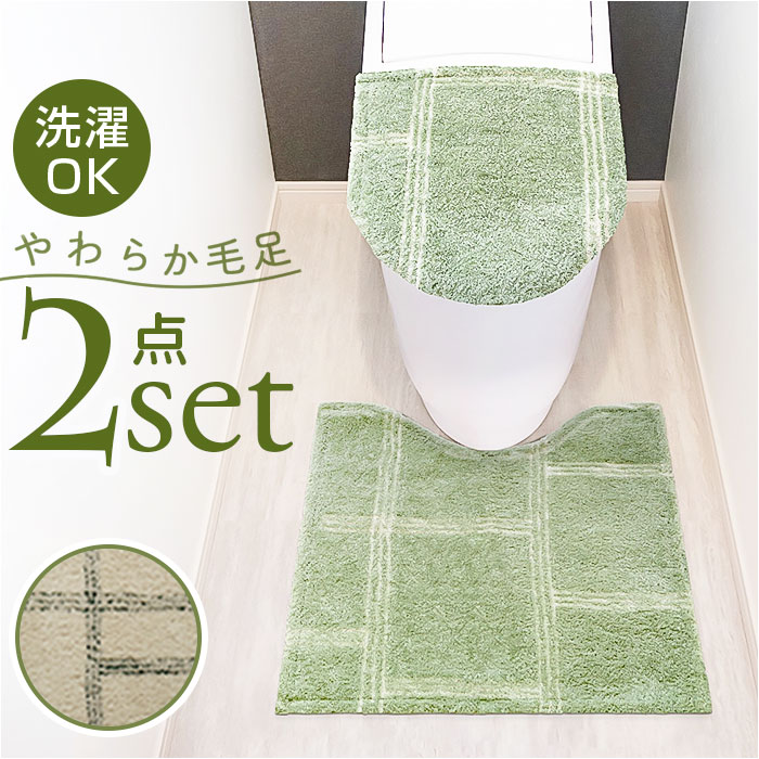 ■オカトー トイレ マット カバー セット 通販 トイレカバー 2点セット トイレタリーセット 2点 トイレマット フタカバー 足元マット ふた