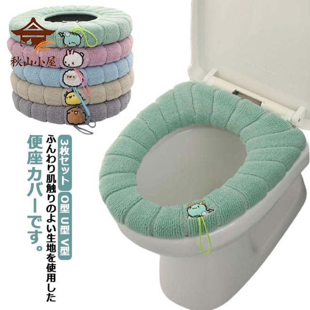 3枚セット 便座カバー 厚手 便座シート トイレカバー 取っ手付き 洗える 洗浄暖房型 O型 U型 V型 無地 厚手 モコモコ ふわふわ おしゃれ あったか かわいい 装着簡単 伸縮性 トイレ用品 秋冬