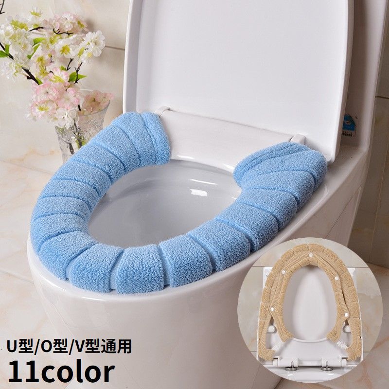 ■便座カバー トイレカバー O型 U型 V型 取り付け簡単 トイレ用品 インテリア雑貨 日用品 洗える ループ付き 無地 単色 シ