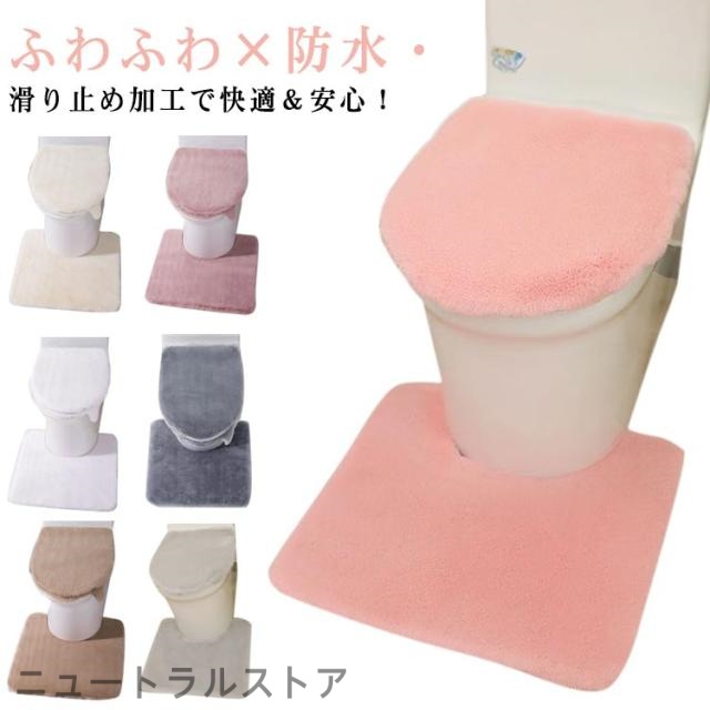 ■トイレカバー 便座シート トイレマット 3点セット ふわふわ ラビットファー エコファー 洗える 防水 滑り止め U型 O型 暖房便座対応 トイ