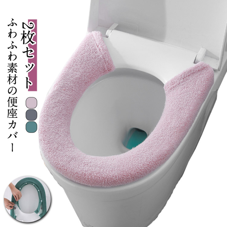 ■【2枚セット】便座カバー インテリア雑貨 ふわふわ 装着簡単 洗える トイレカバー やわらか トイレ用品 かわいい おしゃれ スナップボタ