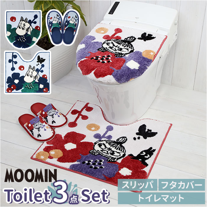 ■ムーミン トイレ グッズ 通販 トイレカバー セット 北欧 3点セット トイレふたカバー トイレ蓋カバー 足元マット トイレマット スリッパ