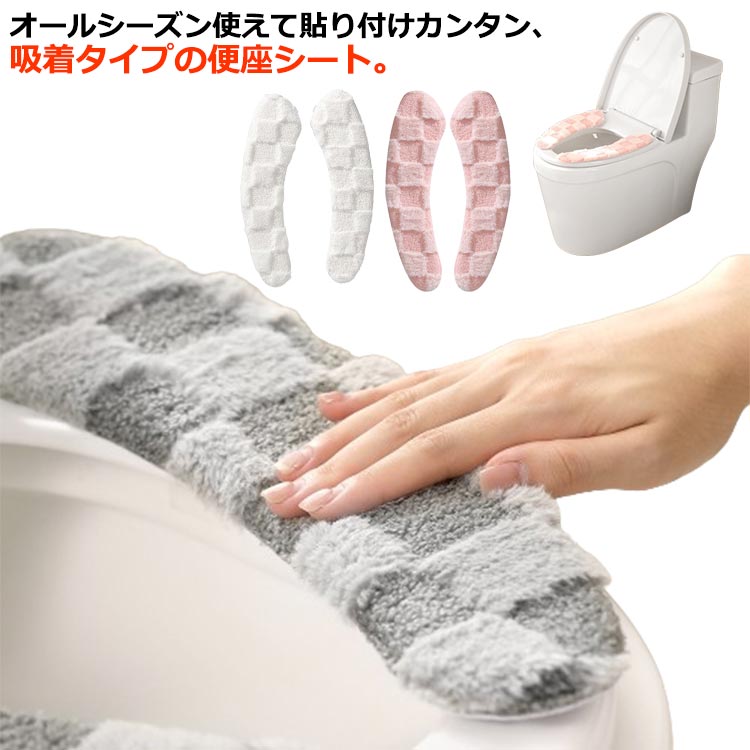 ■4点セット!便座カバー トイレカバー 便座クッション 便座シート 貼る 洗浄暖房型 O型 U型 厚手 洗濯 洗える ふわふわ 無地 吸着 モコモ