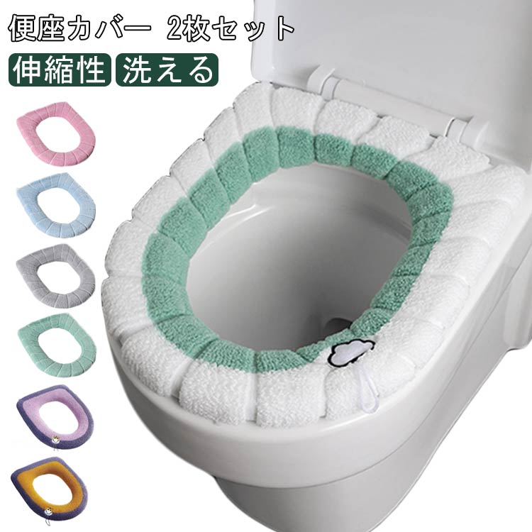 ■便座シート 洗える リング付き 2枚セット シートカバー 柔らかい 無地 トイレカバー 厚手 シンプル 伸縮性 簡単取付け 便座シート トイレ