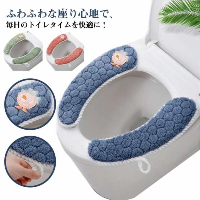 ■便座カバー トイレカバー O型 装着簡単 トイレ用品 インテリア雑貨 日用品 U型V型にも対応 洗える おしゃれ かわいい ふわふわ 単色 無地