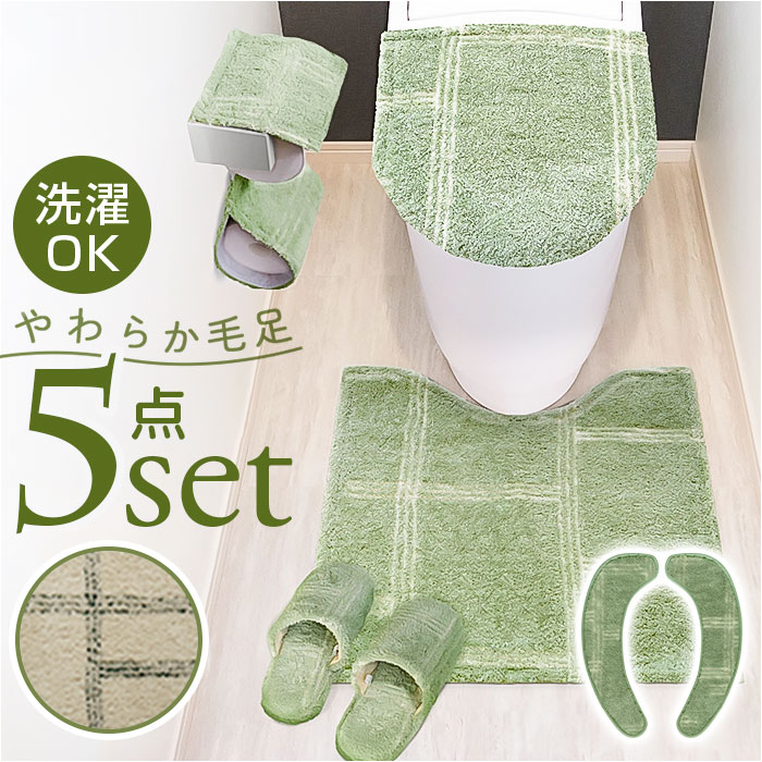 ■オカトー トイレ マット カバー セット 通販 トイレカバー 5点セット トイレタリーセット トイレマット フタカバー 便座シート ペーパー