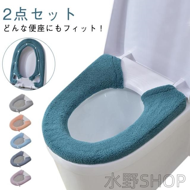 ■★2枚組★ 便座カバー トイレカバー トイレ マジックテープ ファスナー ジッパー O型 トイレ用品 おしゃれ カラーパレット 洗える 厚手