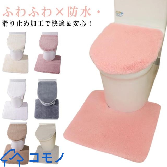 ■トイレマット トイレカバー エコファー 3点セット 便座シート 滑り止め トイレカバー ラビットファー 防水 ふわふわ U型 O型 暖房便座対