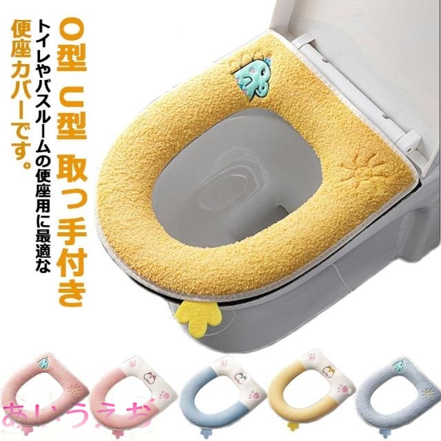 ■便座カバー 取っ手付き 便座シート 水洗い 柔らかい 便座クッション O型 U型 トイレカバー 防水 無地 シンプル ずれない 簡単 介護 トイ